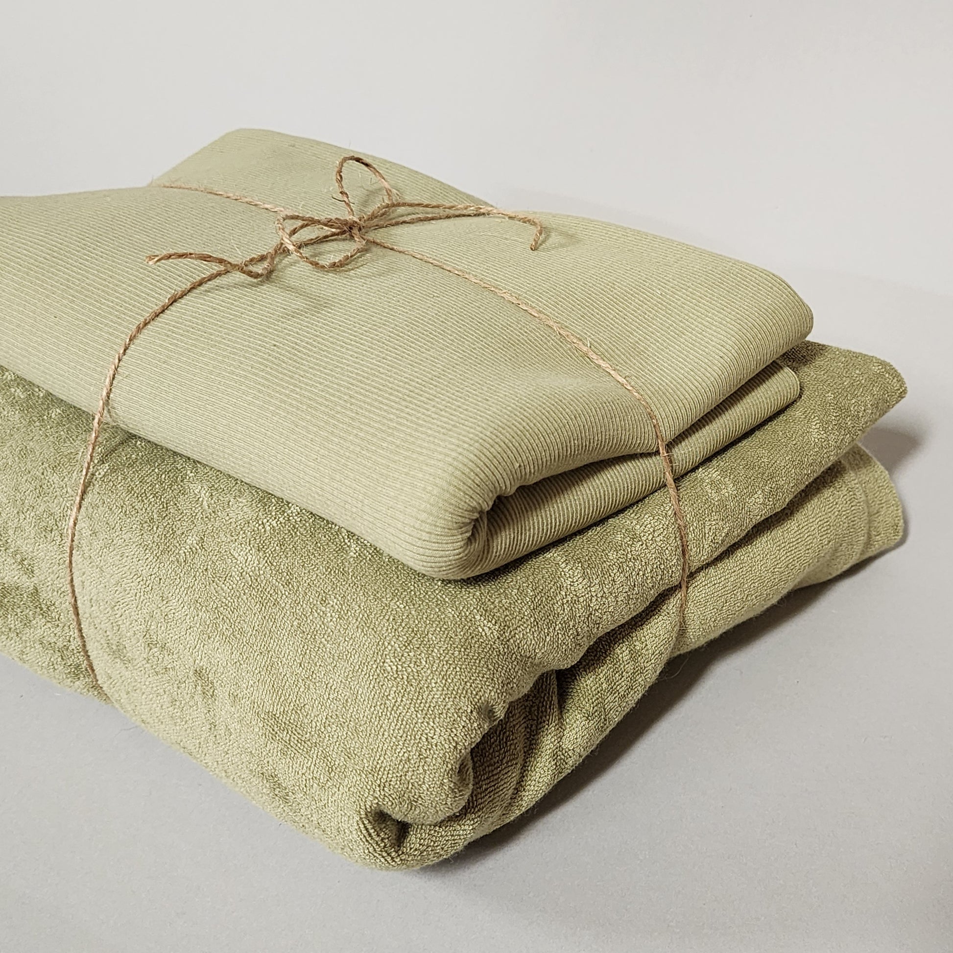 Bundle includes 2 yards of Aloe sponge terry and 1 yard of Aloe 2x1 rib. Total is 3 yards.